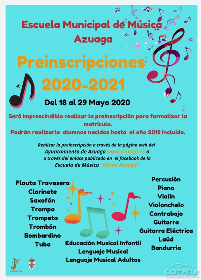La Escuela Municipal de Música de Azuaga abre su plazo de preinscripción, requisito indispensable para posteriormente poder formalizar la matrícula para el próximo curso 2020/2021.