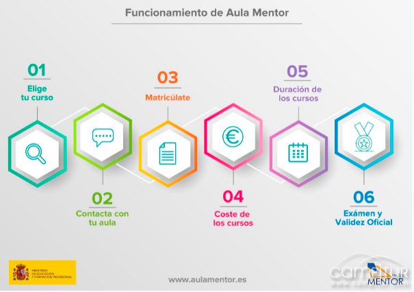 Los cursos se realizan a distancia, teniendo un tiempo de duración flexible dependiendo de lo que dedique cada estudiante al mismo. El Aula está habilitada como aula de examen, ya que, tras superar un examen presencial, el alumno o alumna obtendrá un certificado de aprovechamiento emitido por el Ministerio de Educación y Formación Profesional.